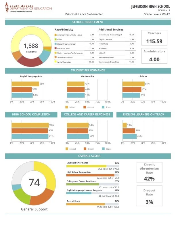 For the results of our work from my previous school (Washington High School), you can access the 2018-2019 Data Profile and Report Card.
